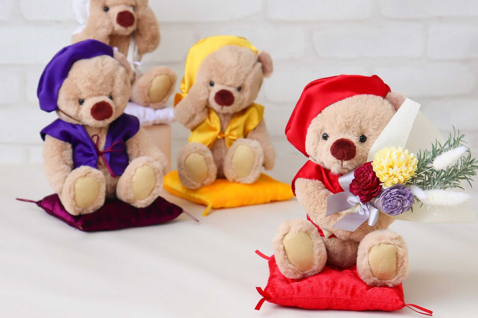 長年培った技術で細部までこだわって作り上げられたテディベアと専用のコスチュームは、提携工場の職人によって丁寧に作られており、贈り物としても最適です。