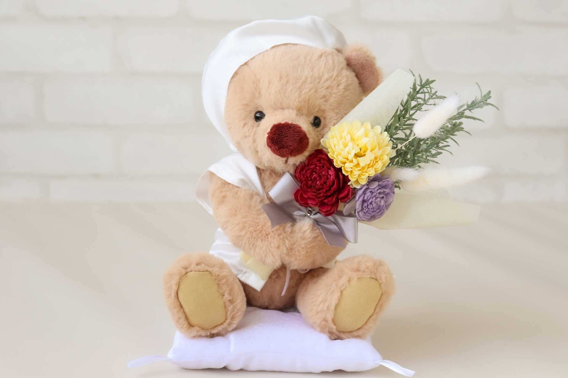 TeddyBearLifeJapan(海外販売):https://teddybearlife.jp/collections/all-products/products/longevity-gifts-kuu-bear-flower-bouquet