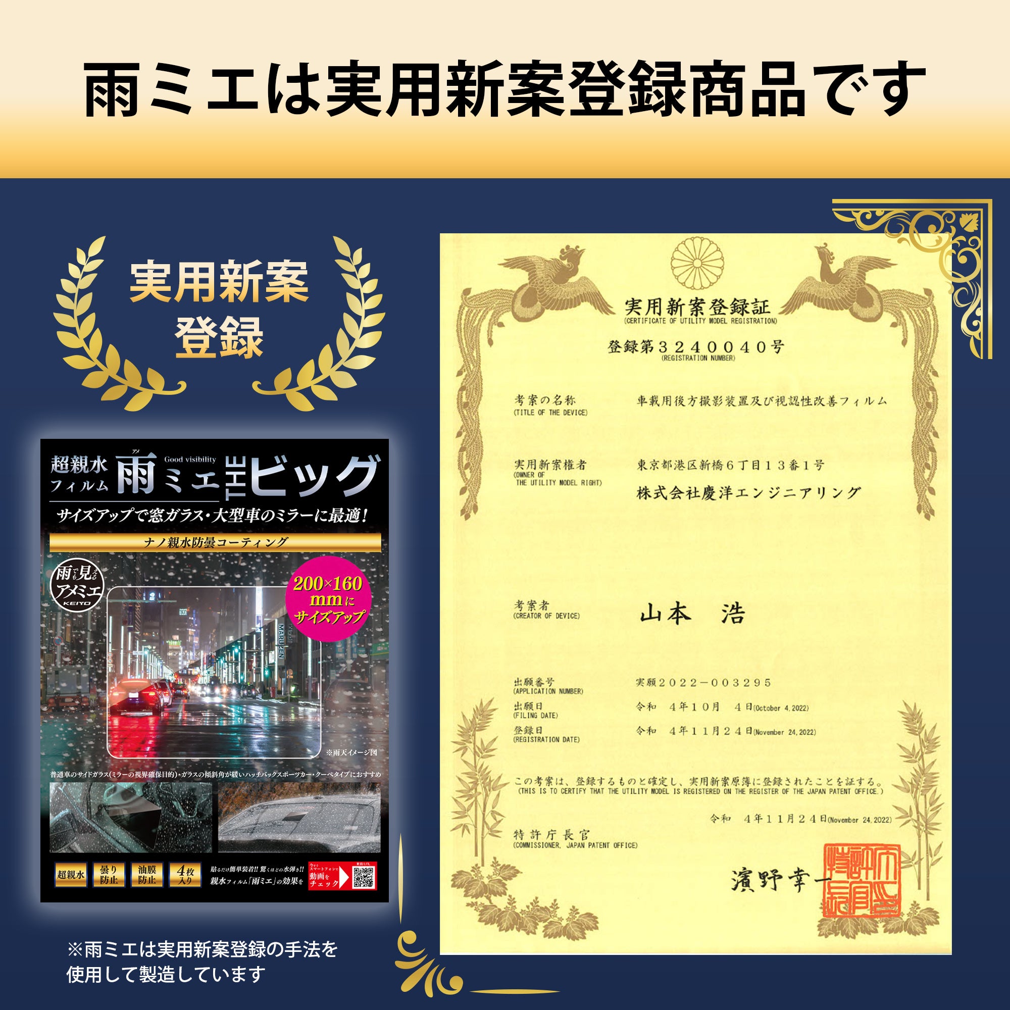 株式会社慶洋エンジニアリング(東京都港区新橋)はご好評頂いております超親水フィルム「雨ミエ」に追加で2つの新しいモデルを2023年2月4日(土曜)より発売を開始致します。