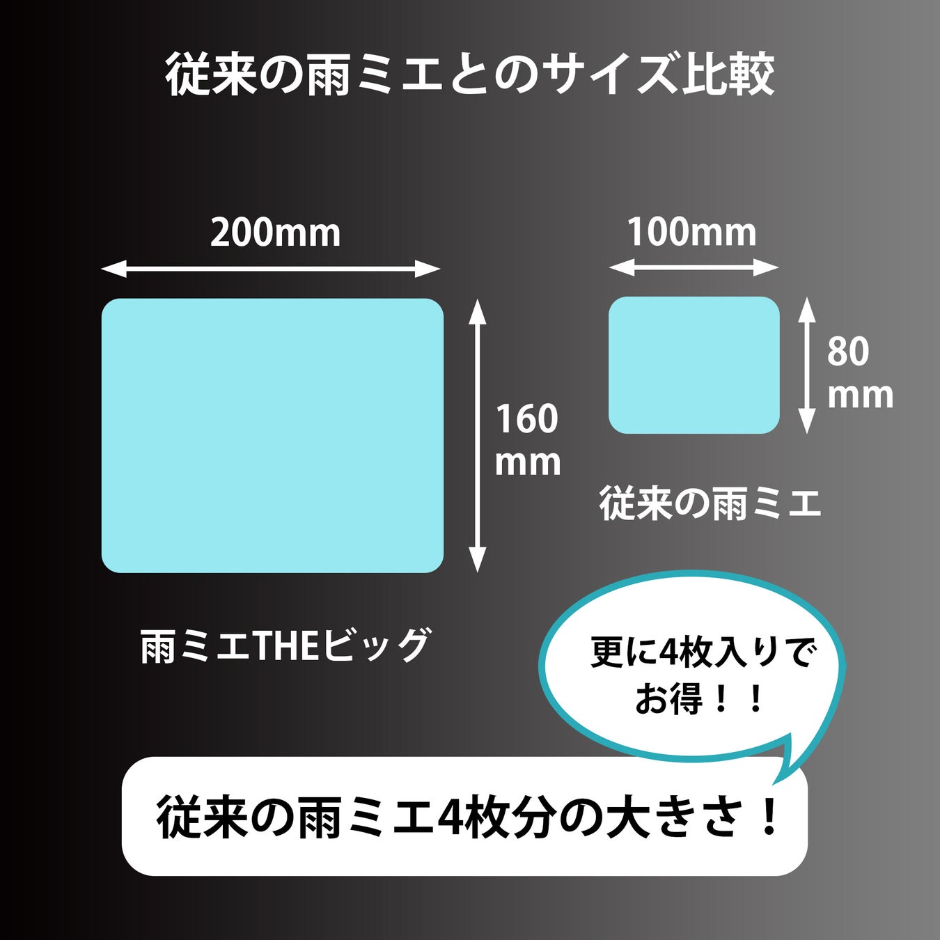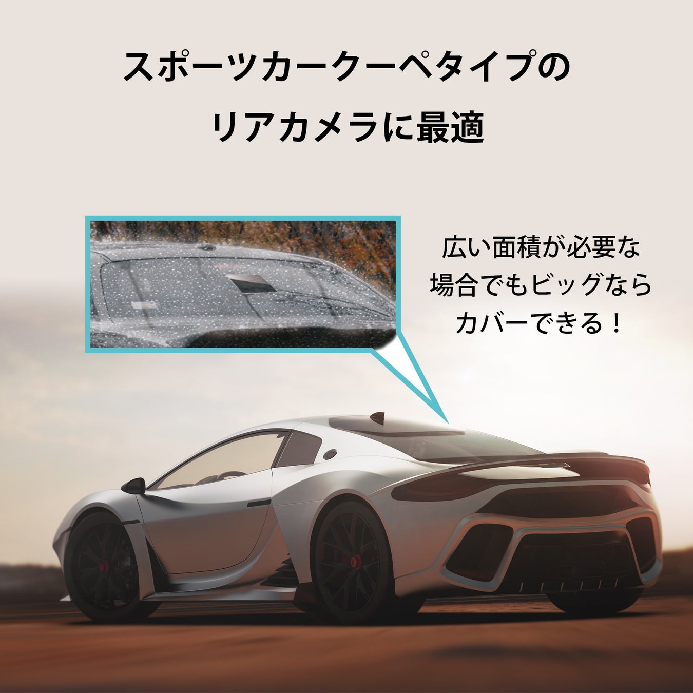 既存モデル同様に雨天時のドラレコやデジタルバックミラーの後方カメラの視界確保に加え、サイドガラスにも貼れる大きさの大判【200x160mm】サイズとしております。
