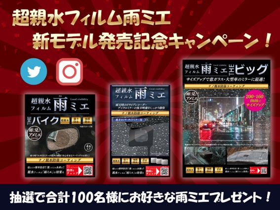 超親水フィルム「雨ミエ・THEビック」「雨ミエ・THEバイク」発売のお知らせ