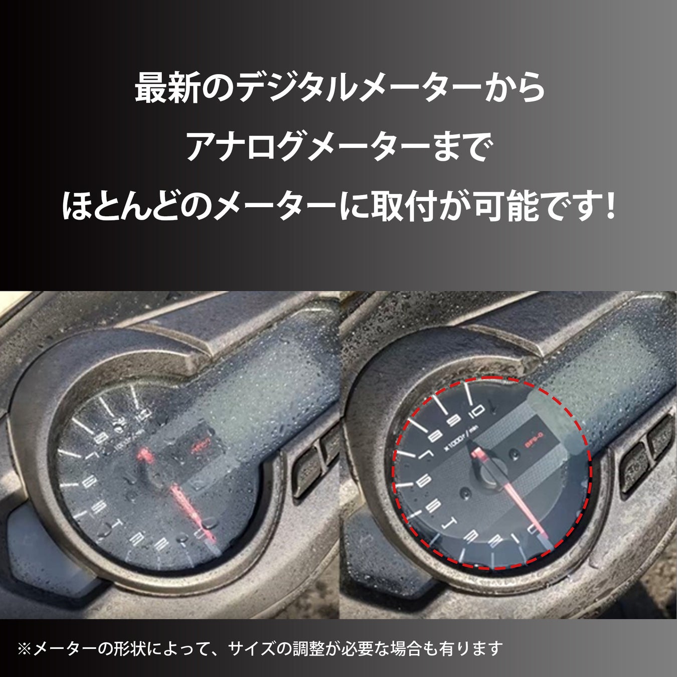 “バイクで雨天走行中にミラーもメーターも水滴で見えず、後方や速度の確認が都度できない”