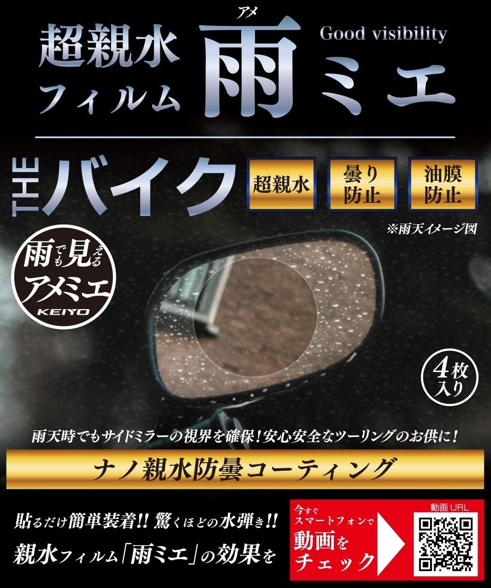 KEIYO新商品 大好評発売中の超親水フィルム「雨ミエ」に新たに「THEビック」&「THEバイク」が登場!!更に本製品発売に合わせてキャンペーンもスタート!