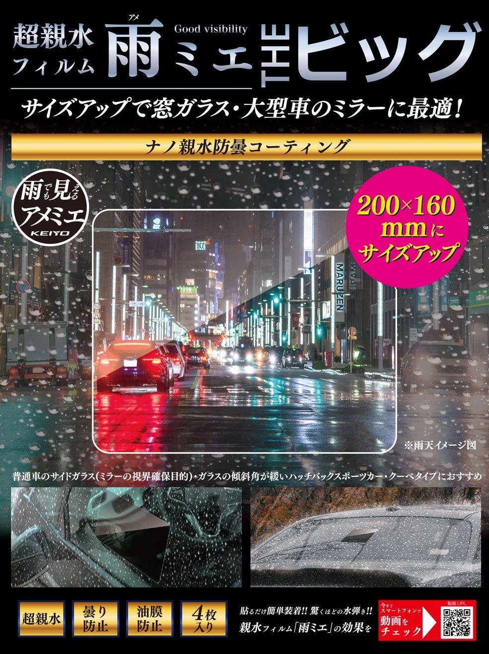 ◆品名:超親水フィルム 雨ミエ THEビッグ/4枚セット