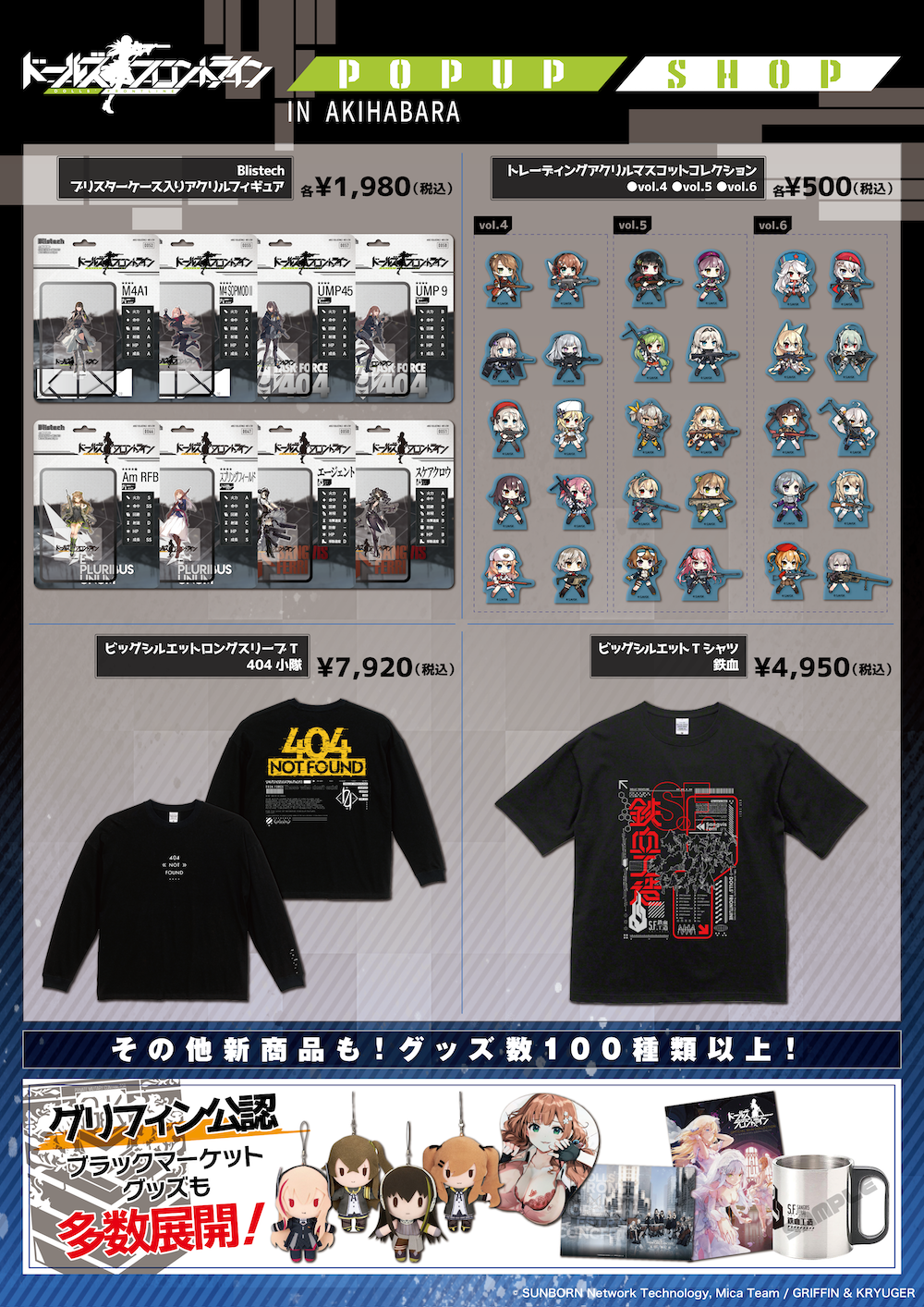 その他に、原作ビジュアル新商品、「グリフィン公認ブラックマーケット( https://df.akbh.jp/ )」商品も多数!その数なんと100アイテム以上!