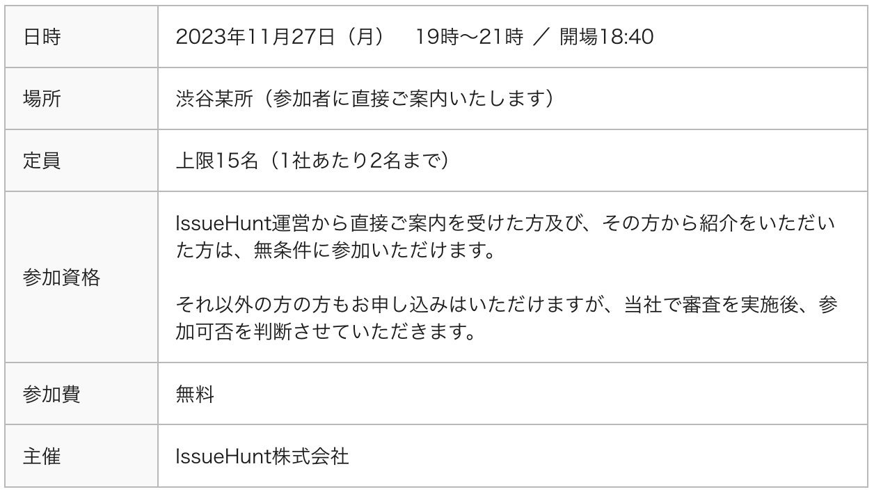 会社名:IssueHunt株式会社