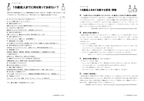 - アクティビティ2「18歳成人までに知っておきたいこと」