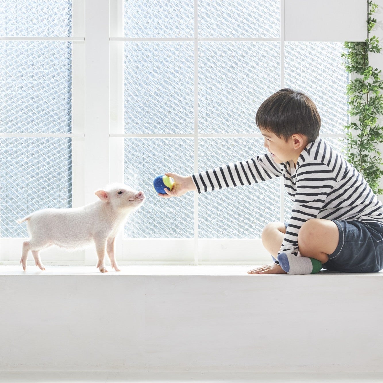 国内のマイクロブタファーム“mipig farm”で生まれたマイクロブタさんは、“mipig cafe”で、ペットとして人間社会で生活する上で重要な「社会性」を身につけたのち、オーナー様のもとへ家族としてお引渡し。お引渡し後も、アプリを通して専門スタッフがサポートいたします。
