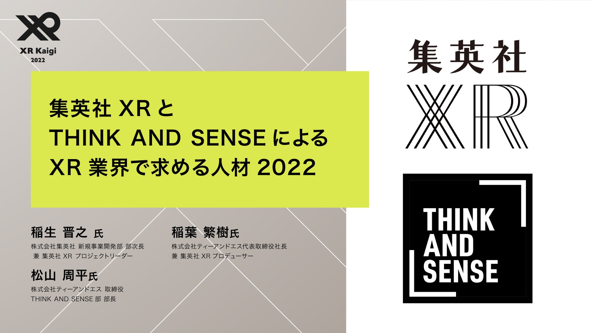 オンラインでは、公式サイト上で行われるセッションに動画出演いたしました。稲葉繁樹(株式会社ティーアンドエス 代表取締役・THINK AND SENSE部プロデューサー・集英社XRプロデューサー)、松山周平(株式会社ティーアンドエス 取締役・THINK AND SENSE部 部長)、稲生晋之(株式会社集英社 新規事業開発部部次長・集英社XRプロジェクトリーダー)の3名が出演し、THINK AND SENSEや集英社XRの活動実績を踏まえ、近年のXR業界に求める人材について対談を行いました。