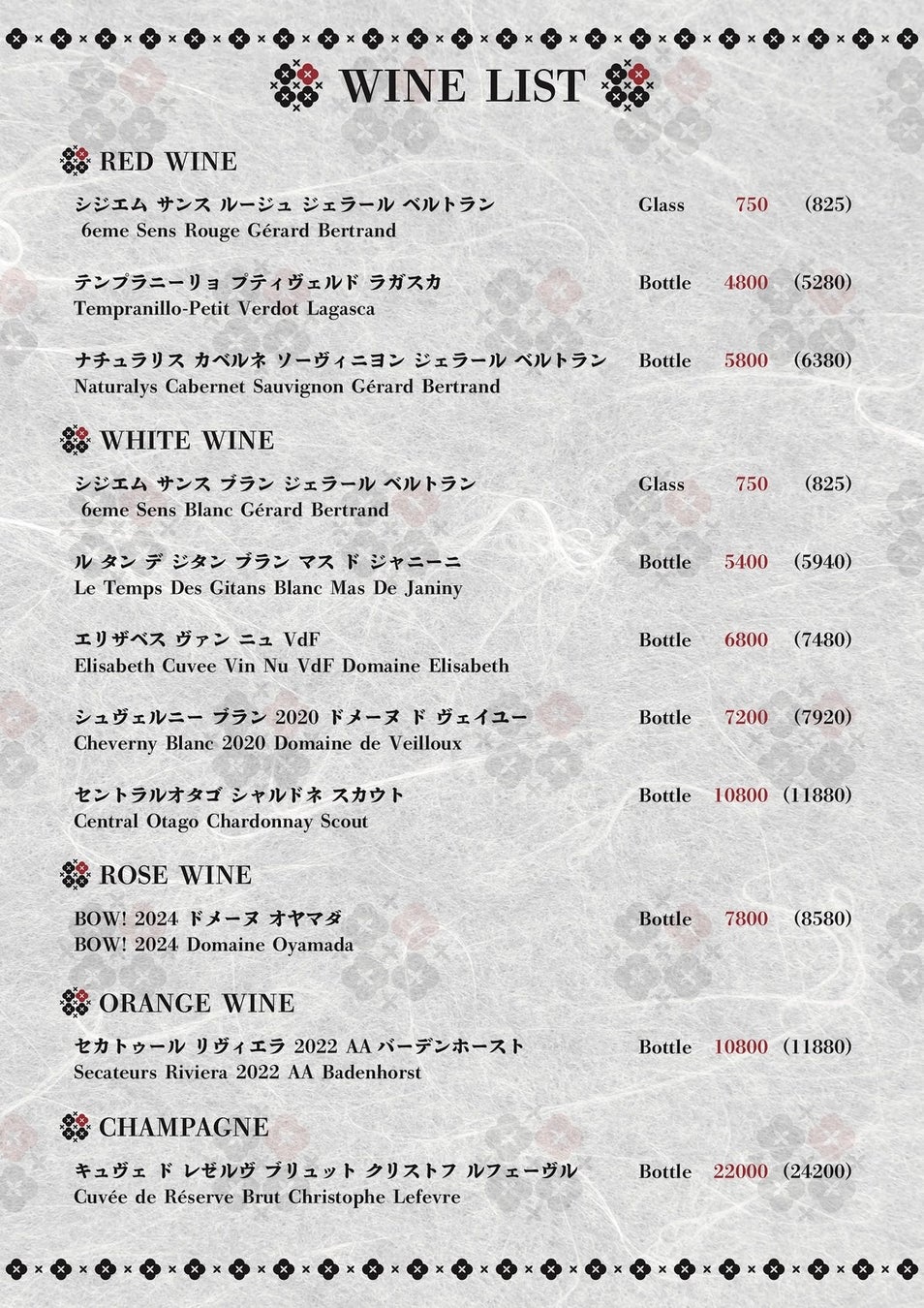 赤3種/白5種/ロゼ1種/オレンジ1種/スパークリング1種を常備しております