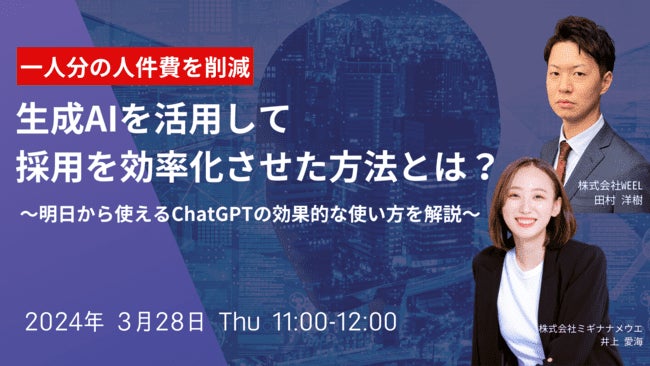 タイトル | 【一人分の人件費を削減】生成AIを活用して採用を効率化した方法とは?〜明日から使えるChatGPTの効果的な使い方を解説〜 |
