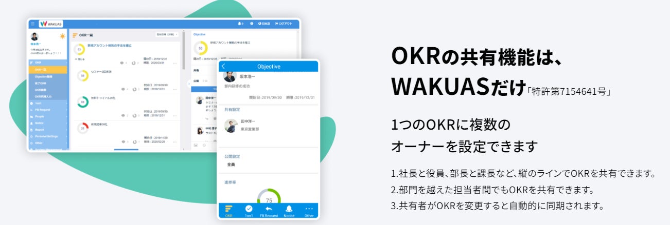 アジャイルHRの提供するOKRと1on1を効果的に運用する支援ツール「WAKUAS」に関する説明を拡充させました。企業のニーズに合わせた導入プランの情報や、機能に関する詳細情報、実際の画面イメージを掲載しています。