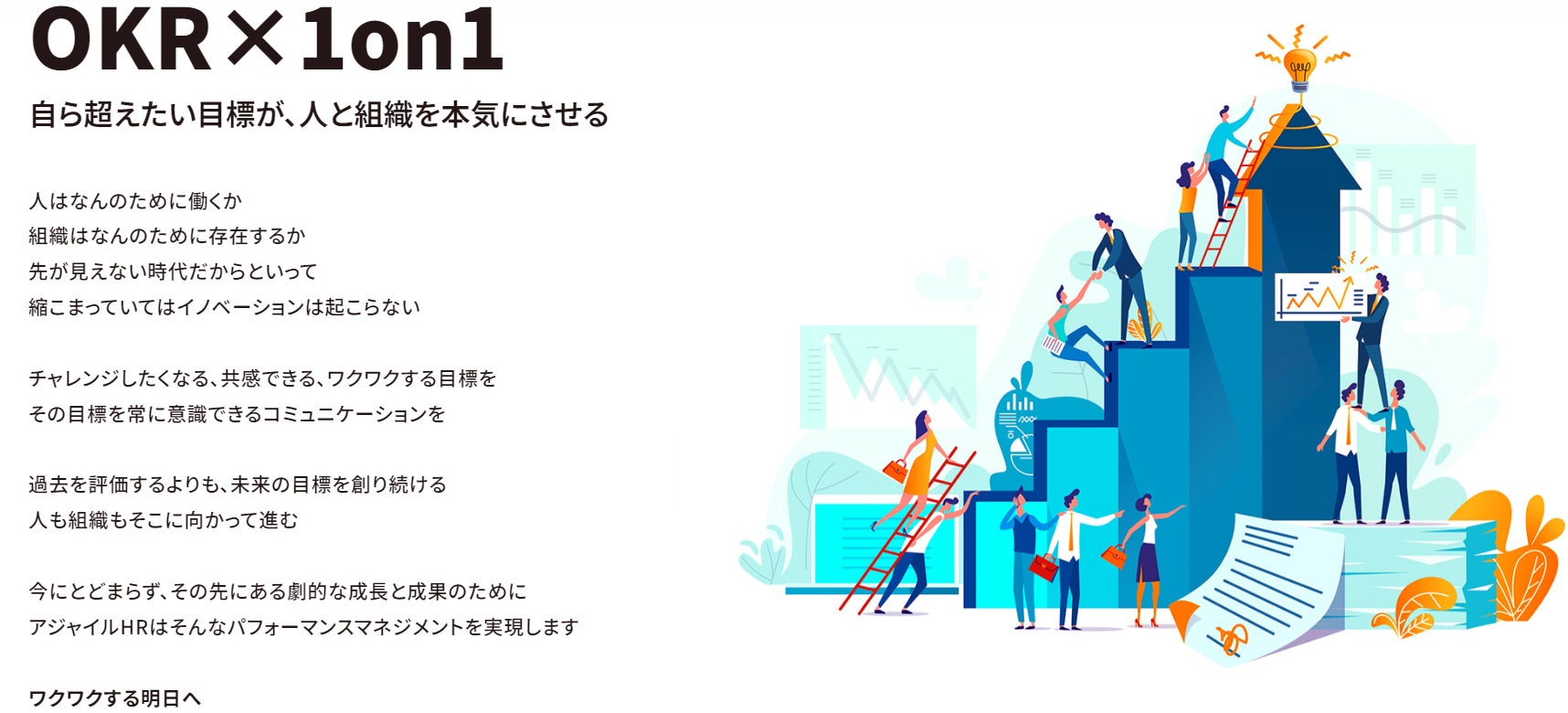 「ワクワクする明日へ」企業のパフォーマンスマネジメントとキャリアマネジメントをサポートする株式会社アジャイルHRが、プロダクトサイトをリニューアル