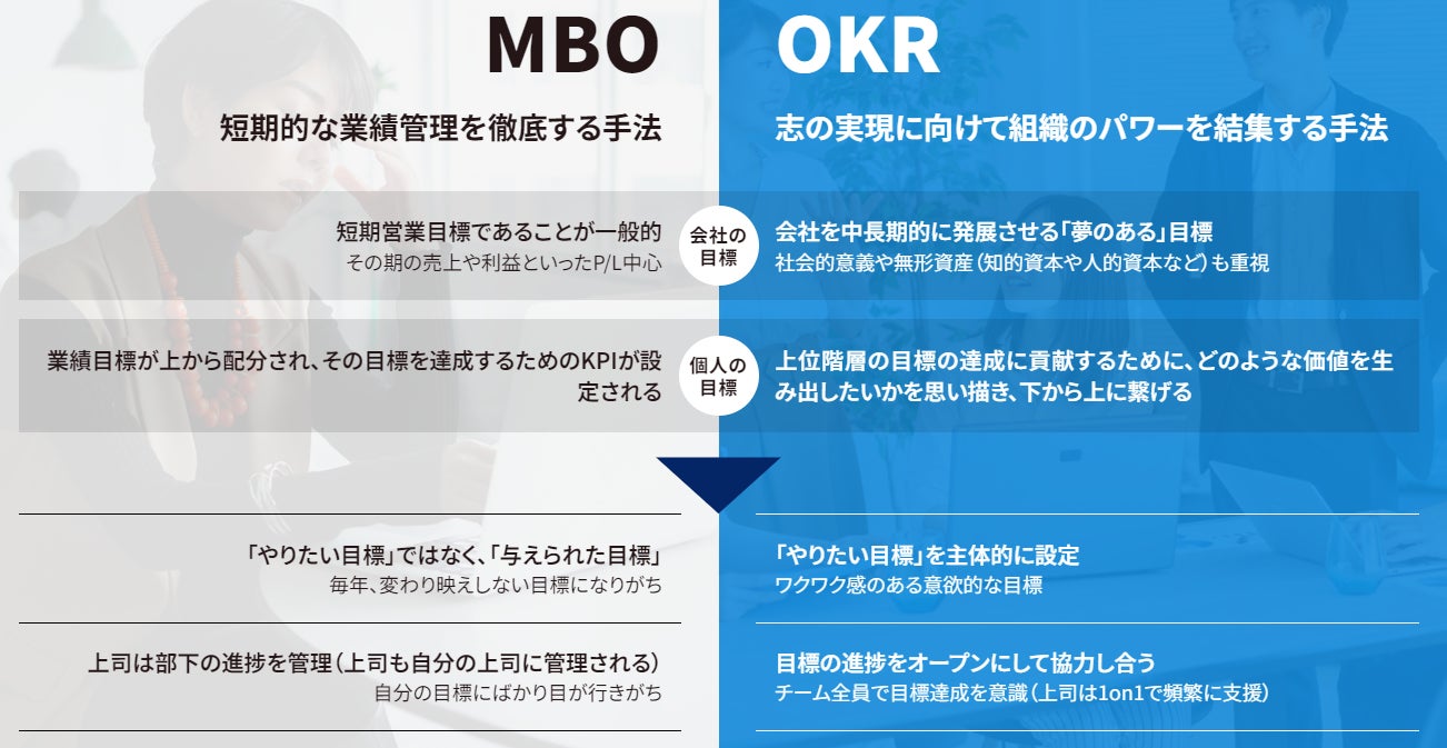 日本企業でのOKR導入支援をしてきたアジャイルHRだからこそ提唱できる、OKRのメリット・特徴や、MBOとの違いについて、わかりやすい情報を掲載しています。