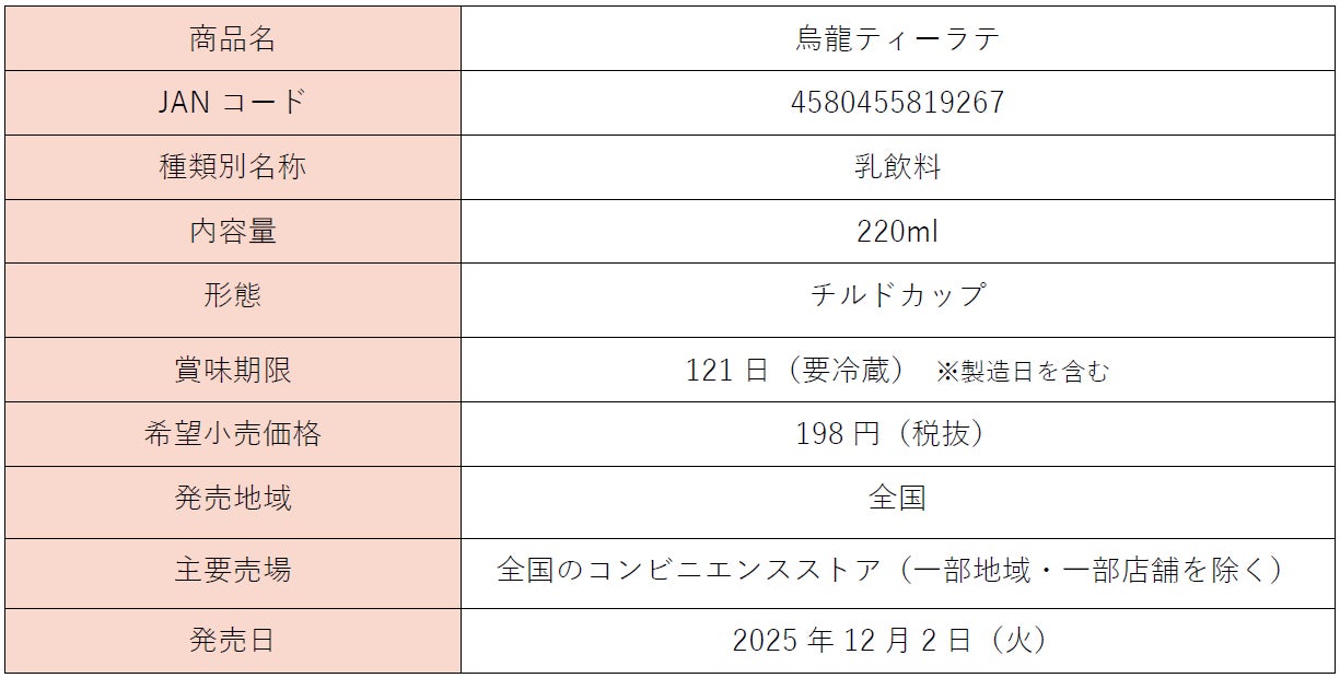 トーヨービバレッジ株式会社(本社:東京都渋谷区、代表取締役社長:熊谷聡)は鉄観音茶を使用した「烏龍ティーラテ」を2025年12月2日(火)より全国のコンビニエンスストアにて順次発売いたします(一部地域・一部店舗を除く)。