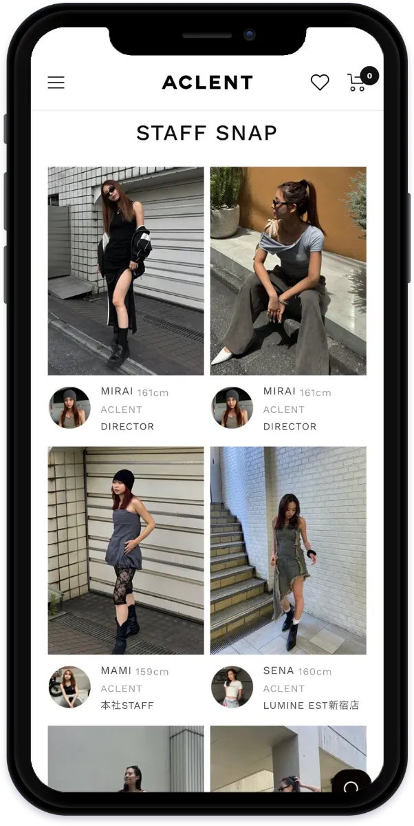 商品の魅力やスタイリング例が分かるスタッフ投稿を掲載することで、購入後の利用イメージが明確になり、商品購入を促進します。