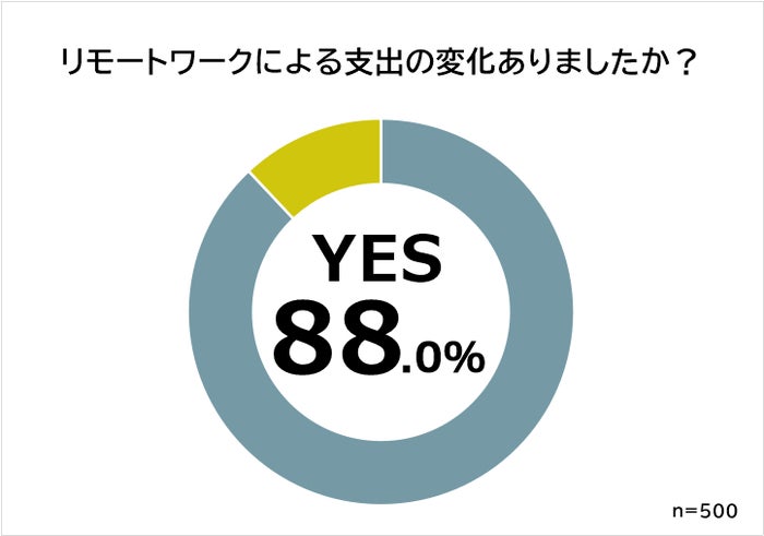 リモートワークによって支出に変化があったか聞いたところ、88.0%もの人が「変化があった」と回答しました。
