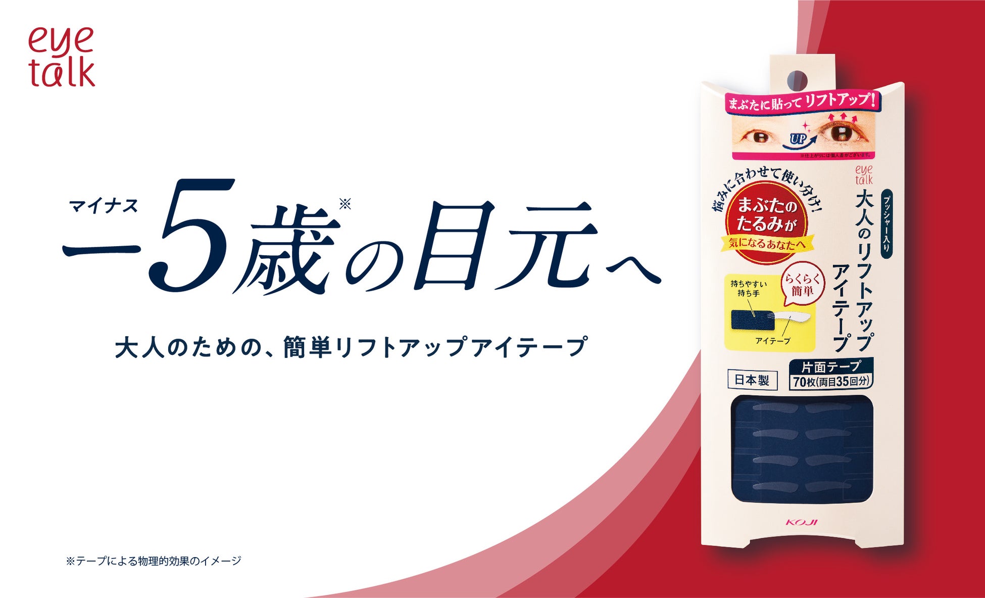 株式会社コージー本舗(本社:東京都台東区 代表取締役社長 小林義典)では、加齢によって感じるまぶたのたるみに貼るだけでリフトアップができる、「アイトーク 大人のリフトアップアイテープ」を2024年2月14日(水)に発売いたします。