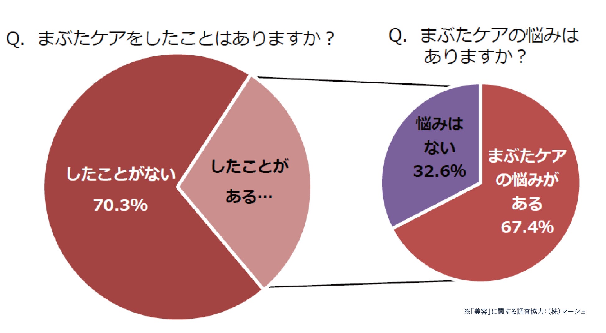 目元ケアの経験者はわずか3割で、約7割がケアに悩みを持っている。