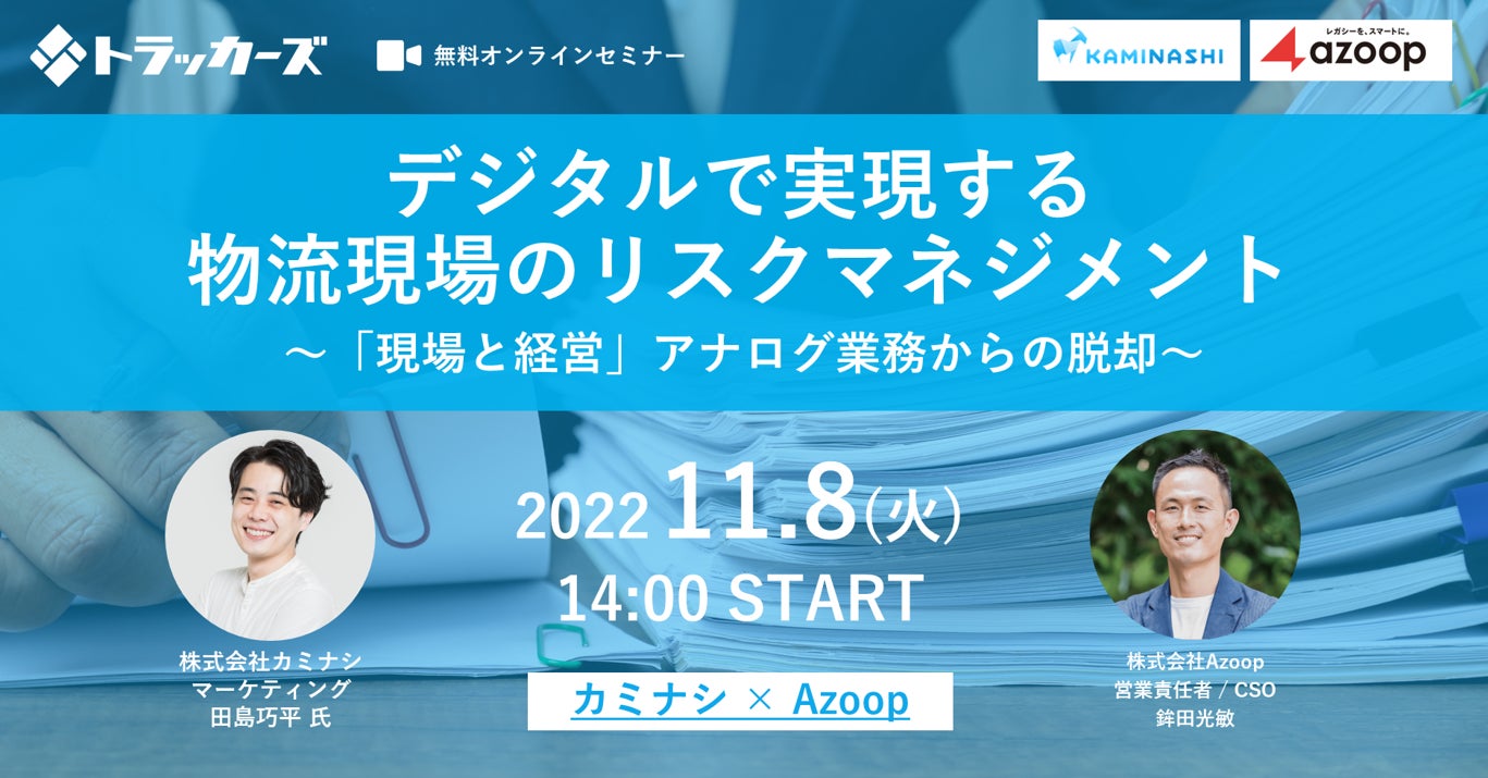 <11月8日(火)トラッカーズセミナー>カミナシ×Azoopによる、『デジタルで実現する物流現場のリスクマネジメント~「現場と経営」アナログ業務からの脱却~』開催