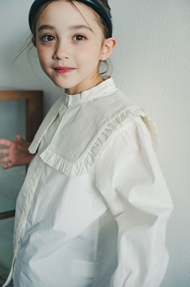 前も後ろもフリル襟が目立ち、どの角度からもガーリーでかわいい印象に。