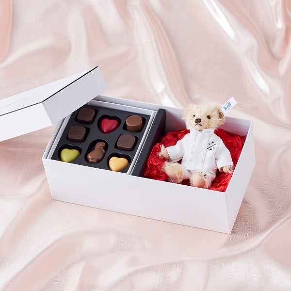 ドイツの最高級ぬいぐるみブランド「シュタイフ」とコラボレーションした特別限定品。ピエール マルコリーニの定番チョコレートとピエール マルコリーニのコック服を着たミニテディベアがセットのギフトボックスです。