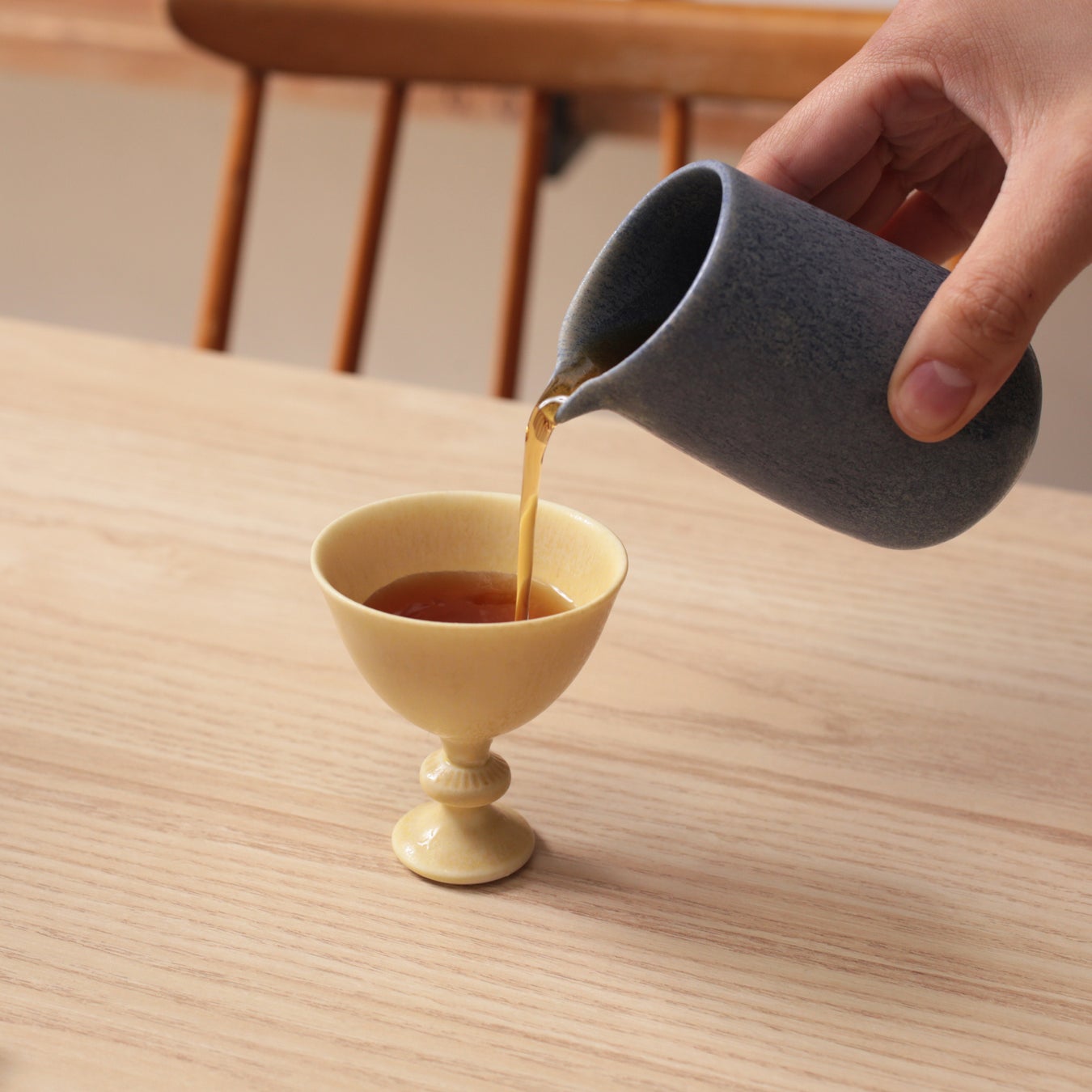 スラムのデザインが粋なカップ2点と1合サイズのピッチャーの3点セットはお酒のシーンにぴったり。テーブルコーディネートの華になるデザインです。専用のギフトボックスはレトロ可愛いテキスタイル柄で、プレゼントを開ける前から昔懐かしさを楽しめます。