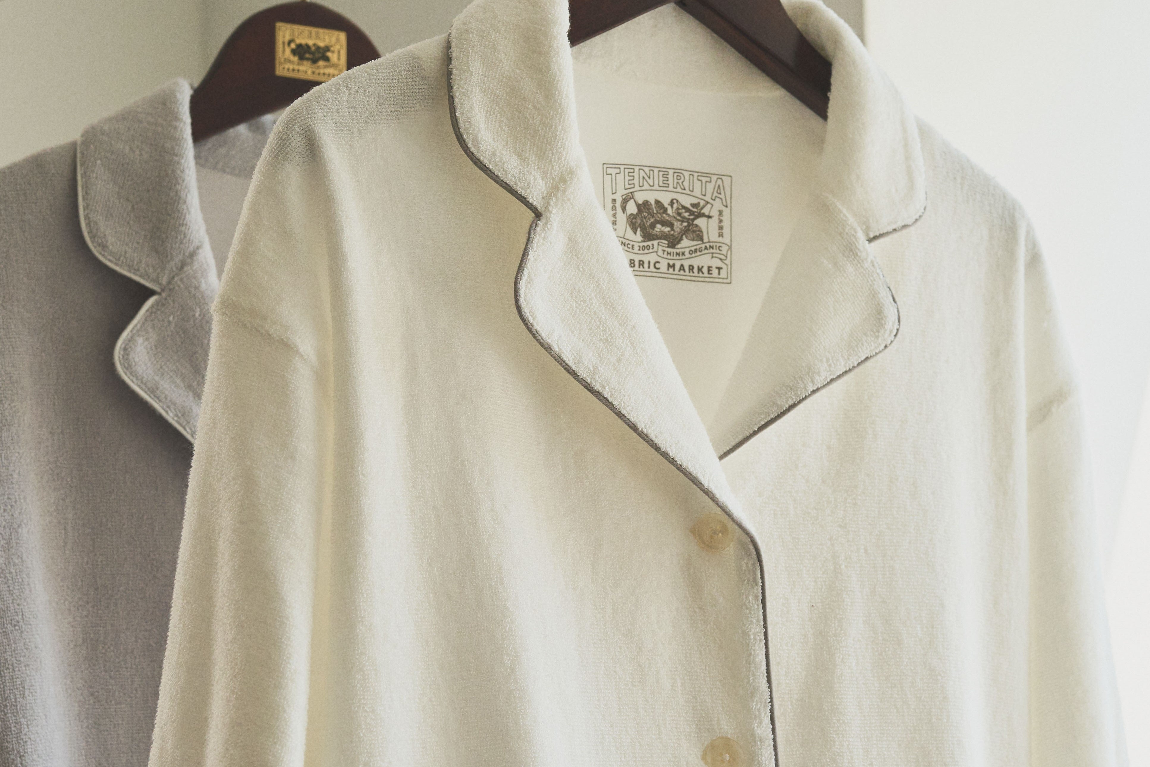 軽くて伸縮性のあるストレッチ素材を使用したパイル地のパジャマ。繊維の長いスーピマコットンを使用し、糸を甘く撚ることで柔らかくしなやかな風合いに仕上がっています。まるでタオルを着ているような心地よさはリラックスタイムにぴったりです。