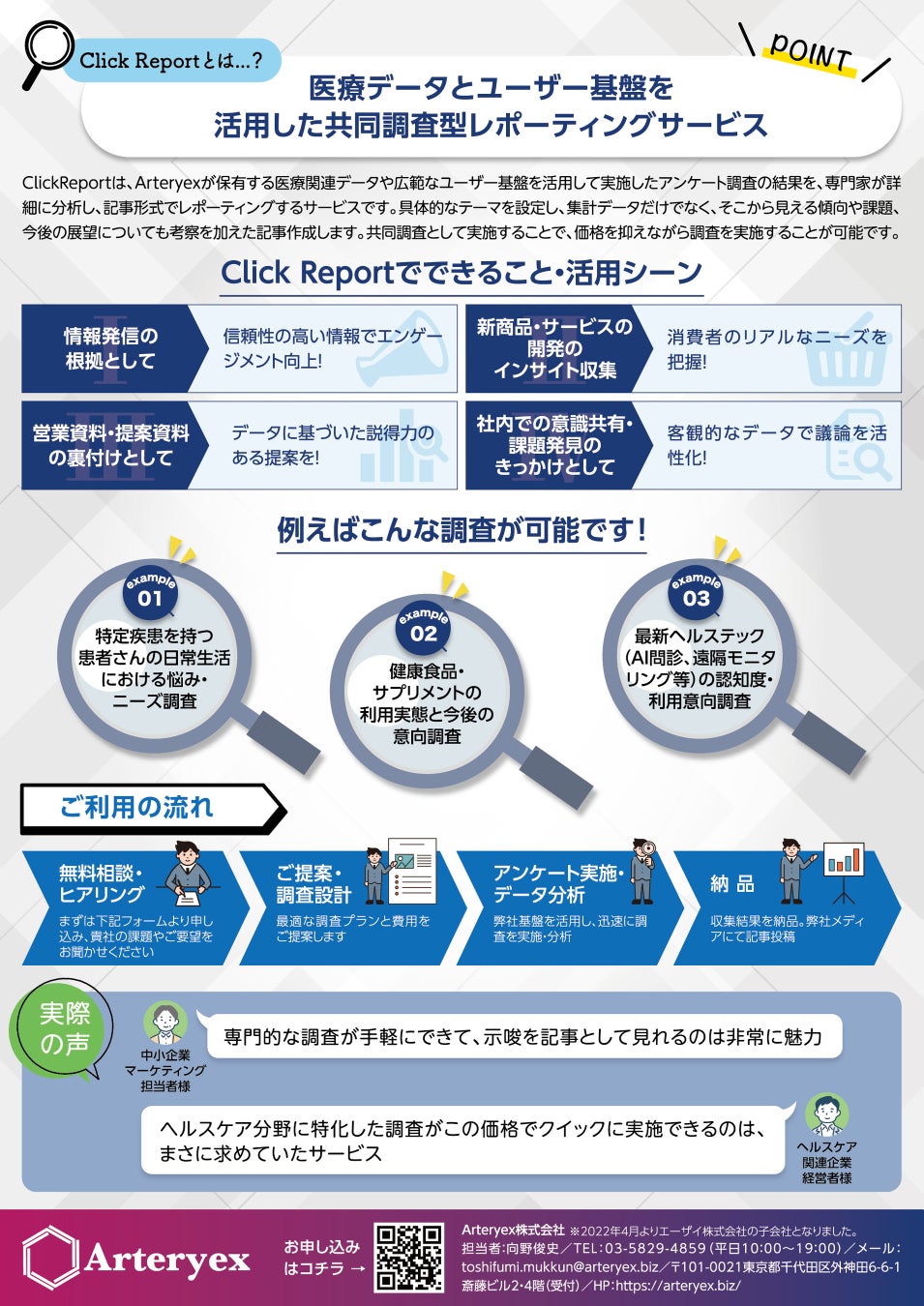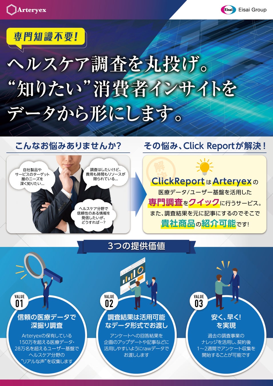 【新サービス発表】Arteryexが保有する医療データやユーザー基盤を活用して実施したアンケート調査の結果を分析し、記事形式でレポーティングするサービス「Click Report」を提供開始