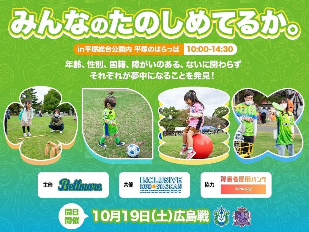 株式会社HANDICAP CLOUD(本社:東京都新宿区、代表取締役社長 兼 CEO:森木 恭平、以下HANDICAP CLOUD)は、Jリーグ湘南ベルマーレと共に障がいの有無に関係なく老若男女誰でも参加でき、みんなの「たのしめてるか。」を発見するきっかけづくりとなるようイベントを開催いたします。