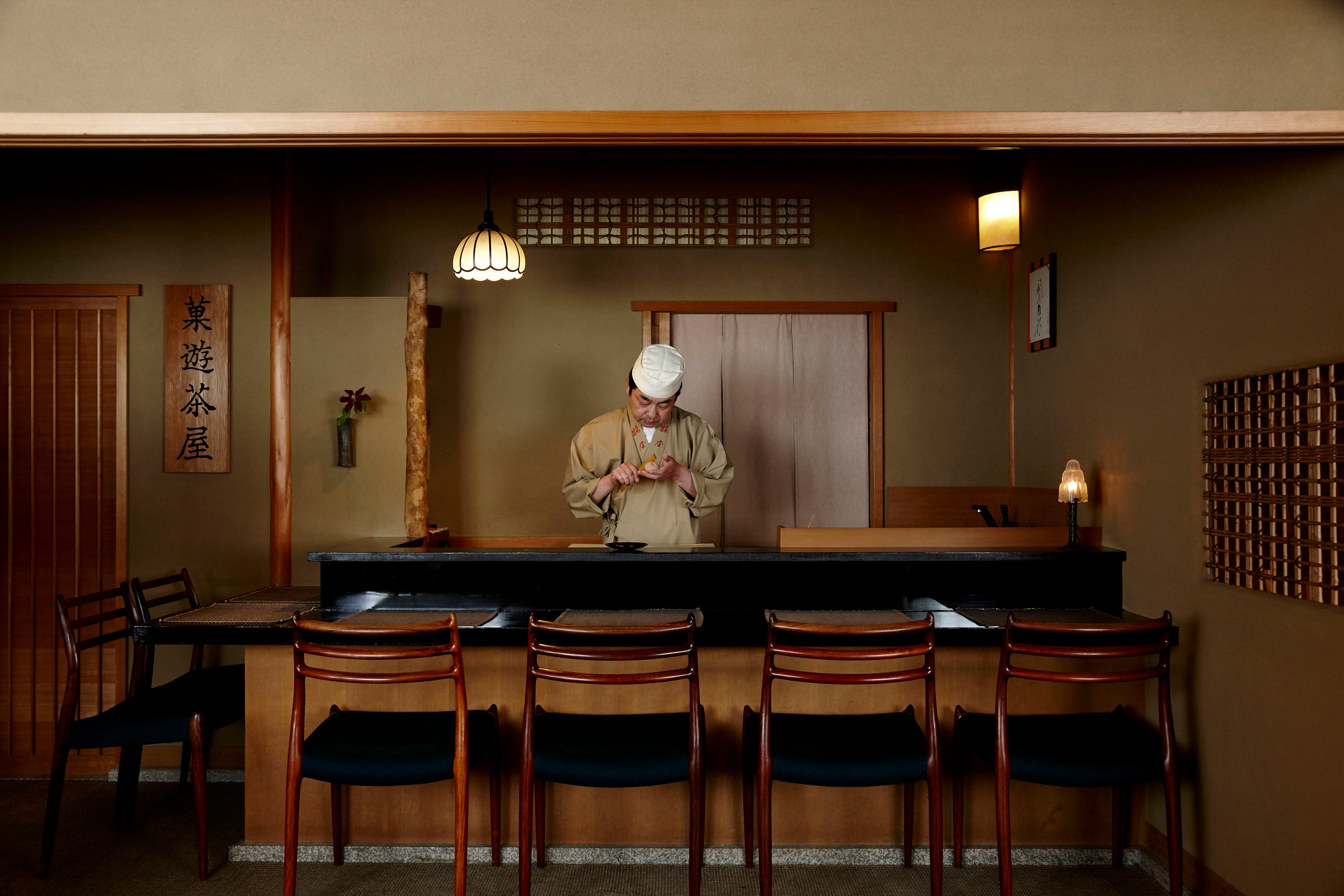 - 鶴屋吉信 本店2階、しっとりと落ち着いた和の空間「お休み処」と「菓遊茶屋」。