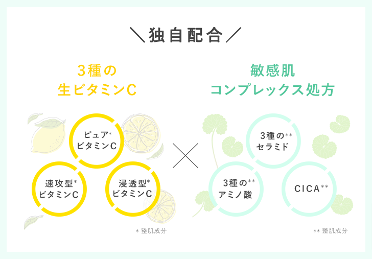 ①3種の生ビタミンC *² 配合 × 敏感肌コンプレックス処方