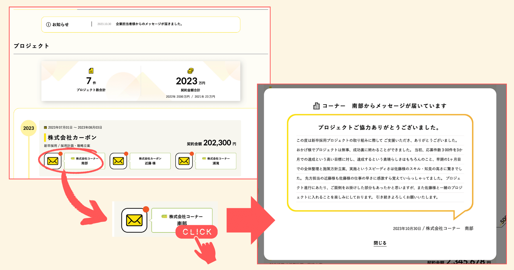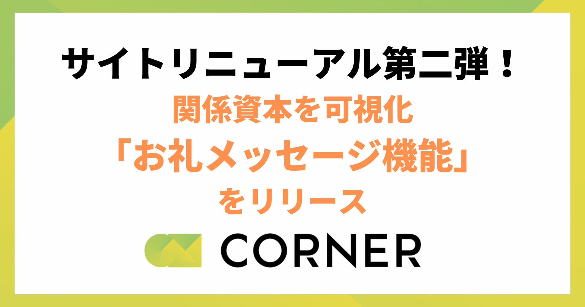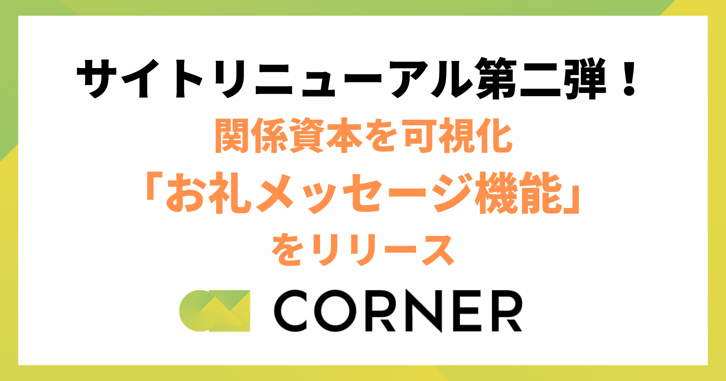 「CORNER」のサービスを通じて形成された関係資本を可視化するため、お礼メッセージ機能を開発いたしました。