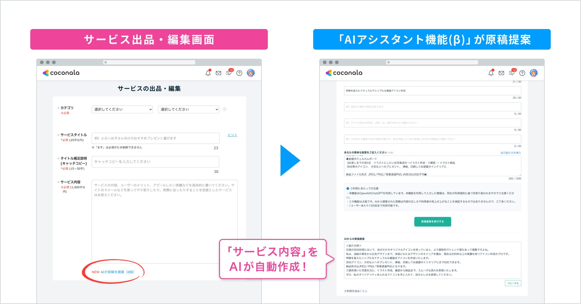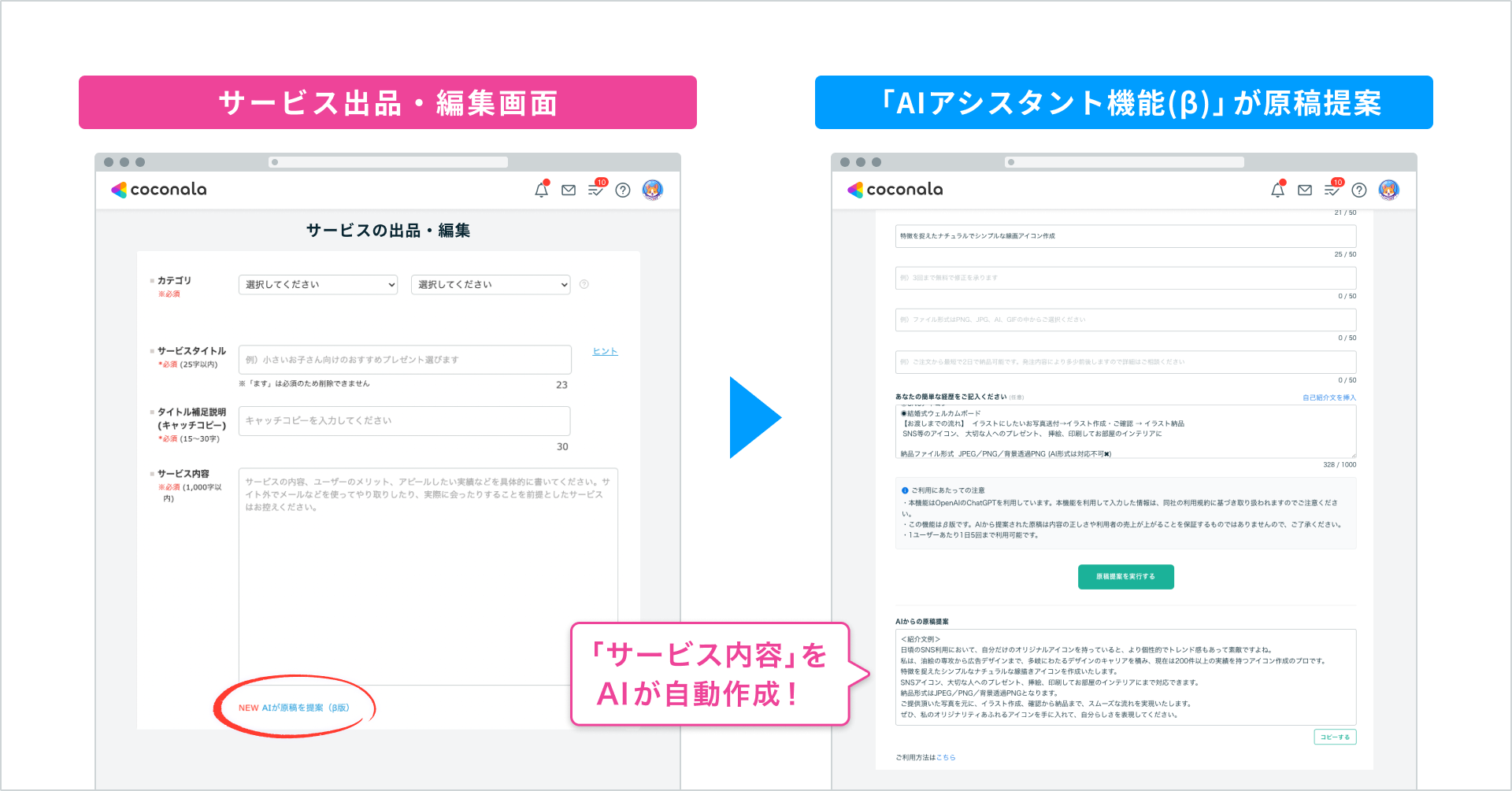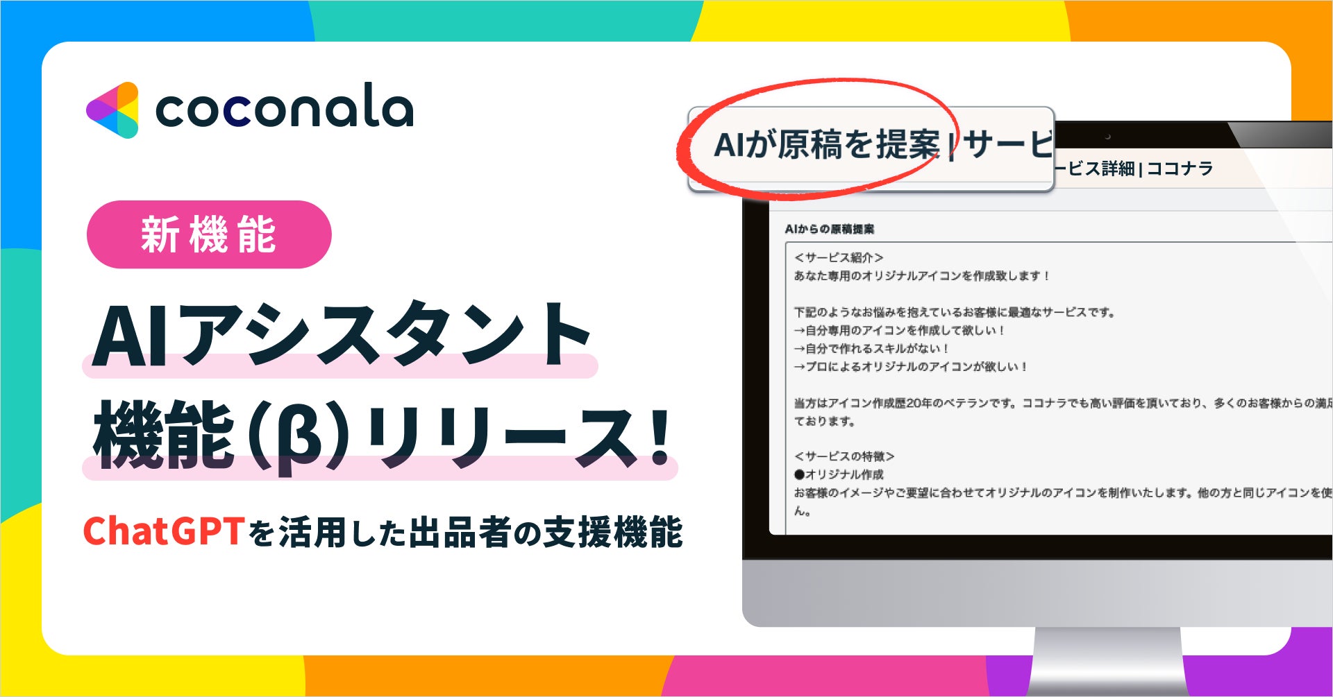 ココナラ、ChatGPTを活用した出品者の支援機能「AIアシスタント機能(β) 」をリリース