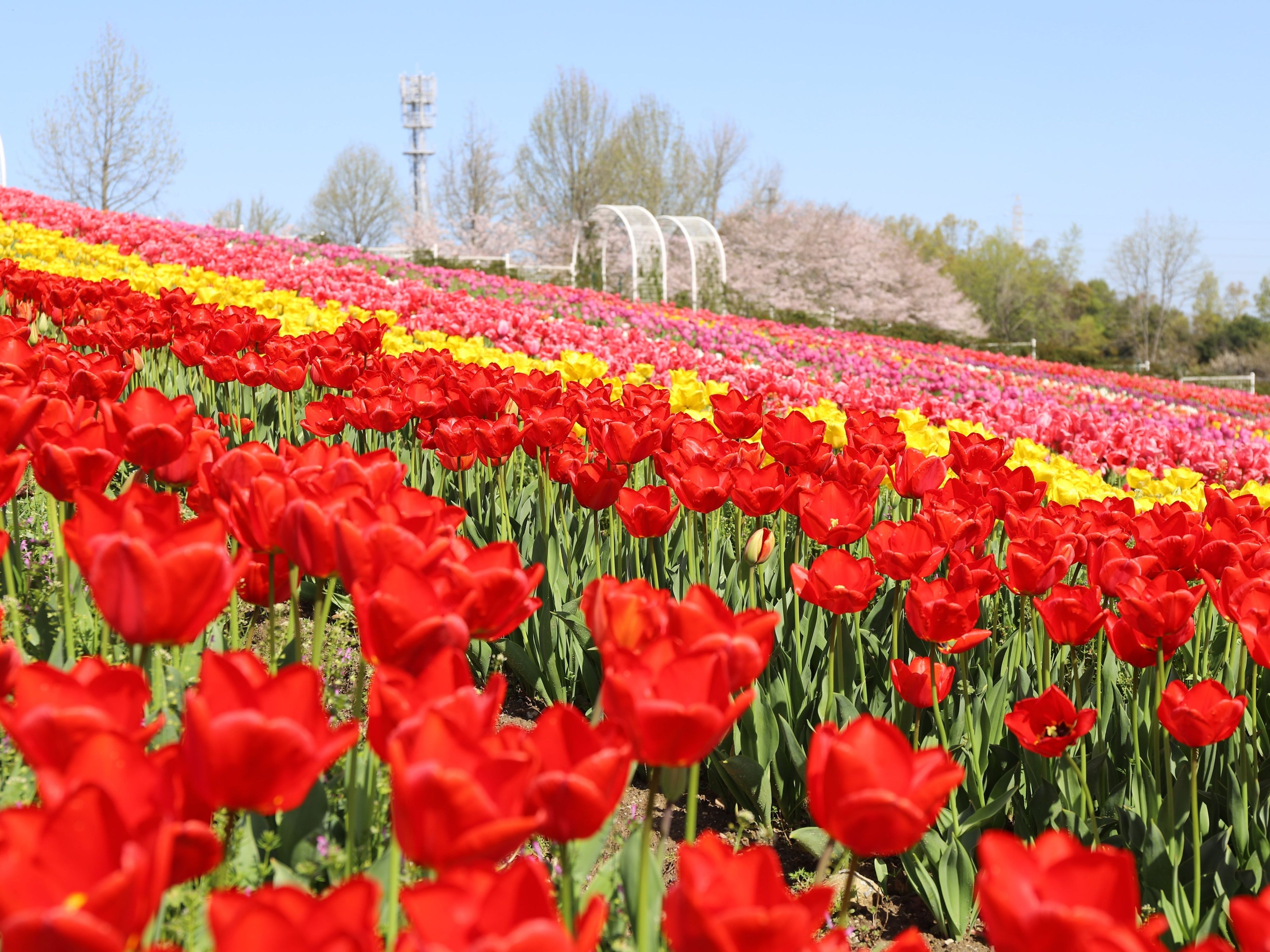 「堺・緑のミュージアム ハーベストの丘」では、「7万本のチューリップ」が咲き始めました。今週中には見ごろになる予想です。週末には見ごろのチューリップ花摘み体験も開催予定。