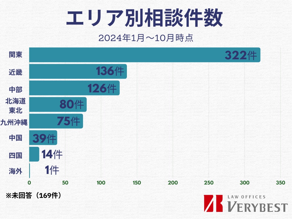 一方で、鳥取県や高知県からの相談数はゼロ件にとどまりました。この背景には、都市部と地方でのリーガルサービスへのアクセス格差が影響していると考えられます。ベリーベストの事務所がない地域では、法的サポートを受けるための心理的・物理的なハードルが高い傾向にあり、地方の労働者がアクセスしにくい現状が浮き彫りになりました。