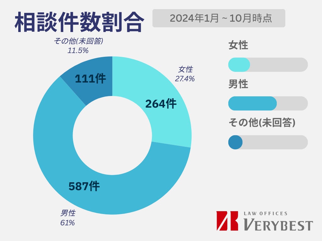 2024年1月から10月までの間にお問い合わせいただいた男女別の件数