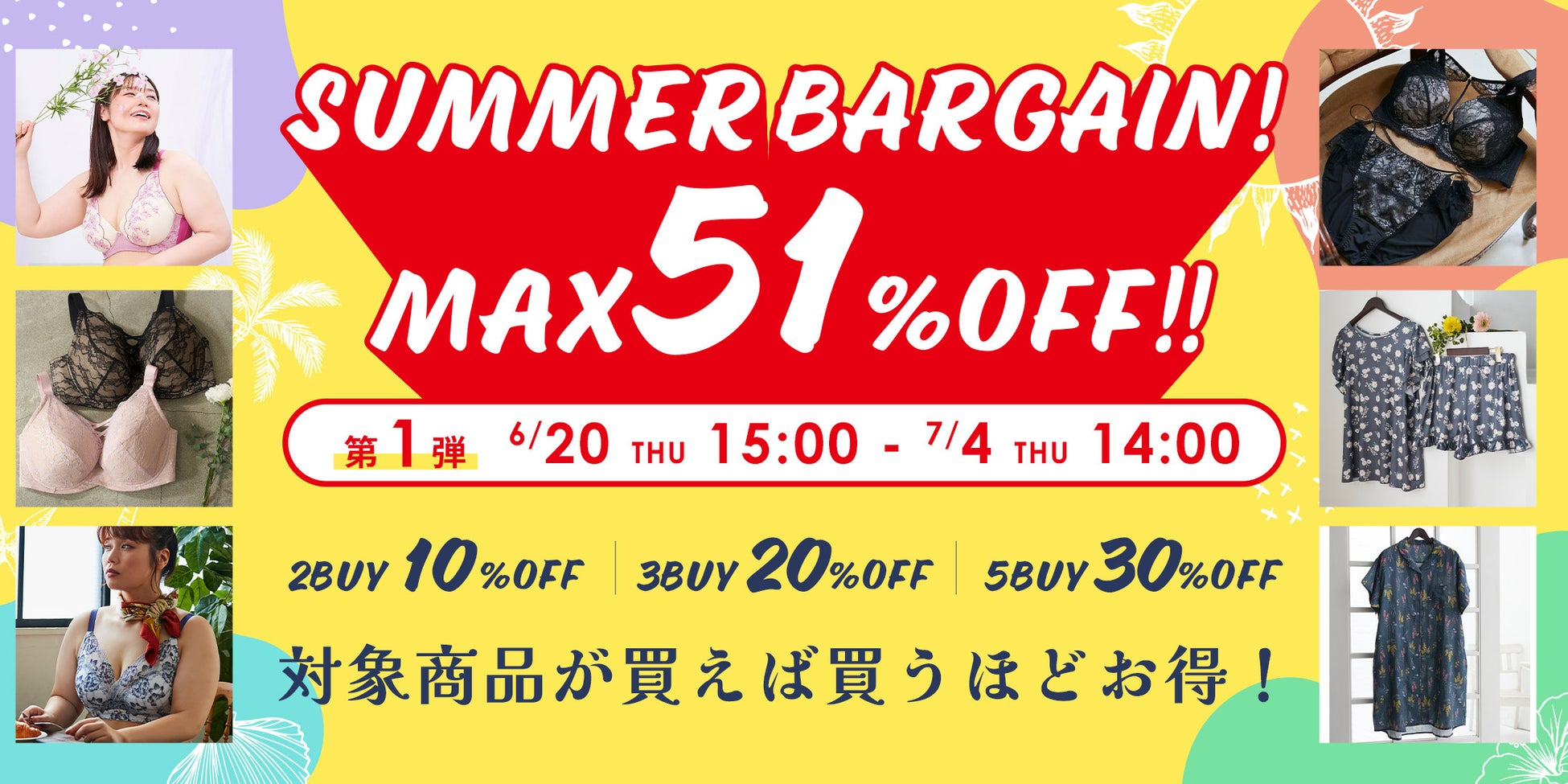 【5BUY30%OFF!】6/20(木)スタート、MAX51%OFF!半期に一度のビッグサマーバーゲン開催【グラマープリンセス】