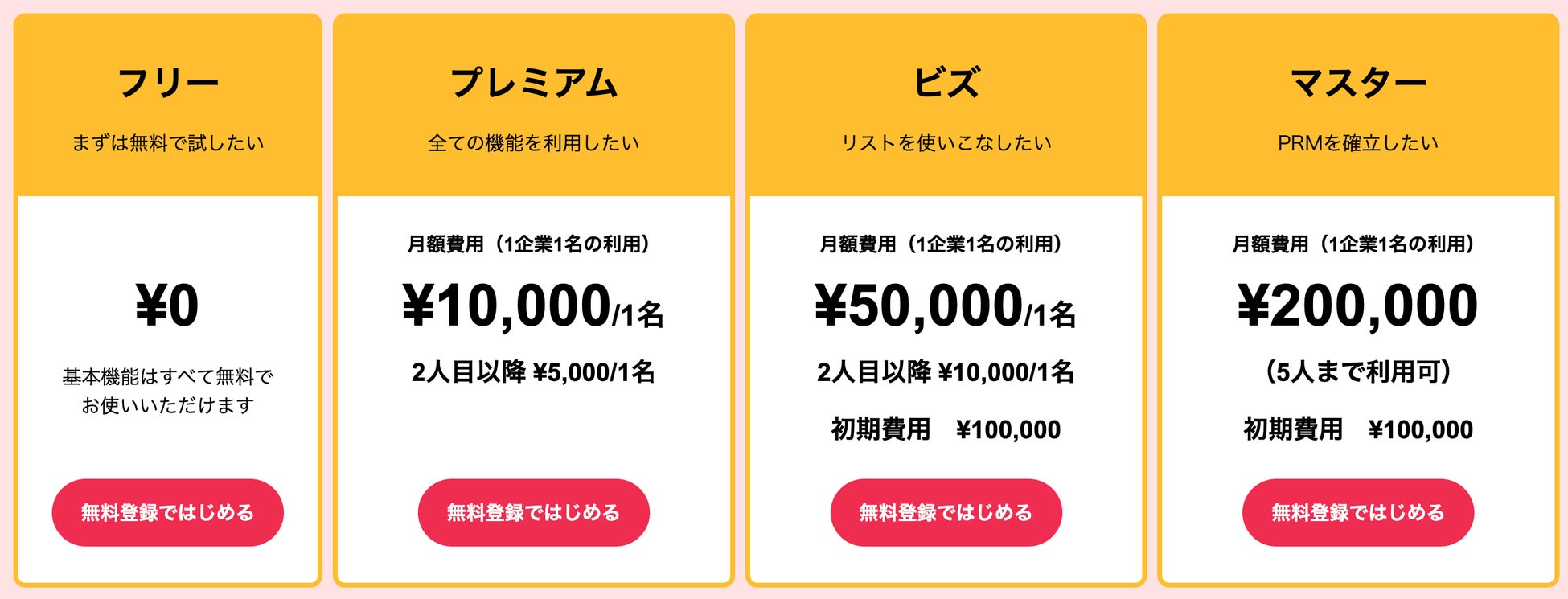 無料のフリープランと、オンライン広報に必要なフル機能が使える月額1万円(税別)のプレミアムプランがあります。2人目以降は1人につき5千円(税別)/月の料金が追加されます。