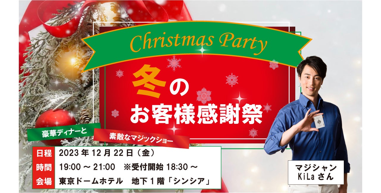 都内でワンルームマンション事業を展開する株式会社青山メインランド(本社:東京都千代田区、代表取締役社長 西原良三)は、12月22日に今年1年の感謝の気持ちを込めてお客様限定のクリスマスパーティーを開催します。