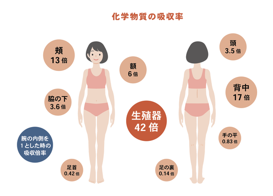 - 腕の内側を1とした場合、デリケートゾーンの吸収率は42倍