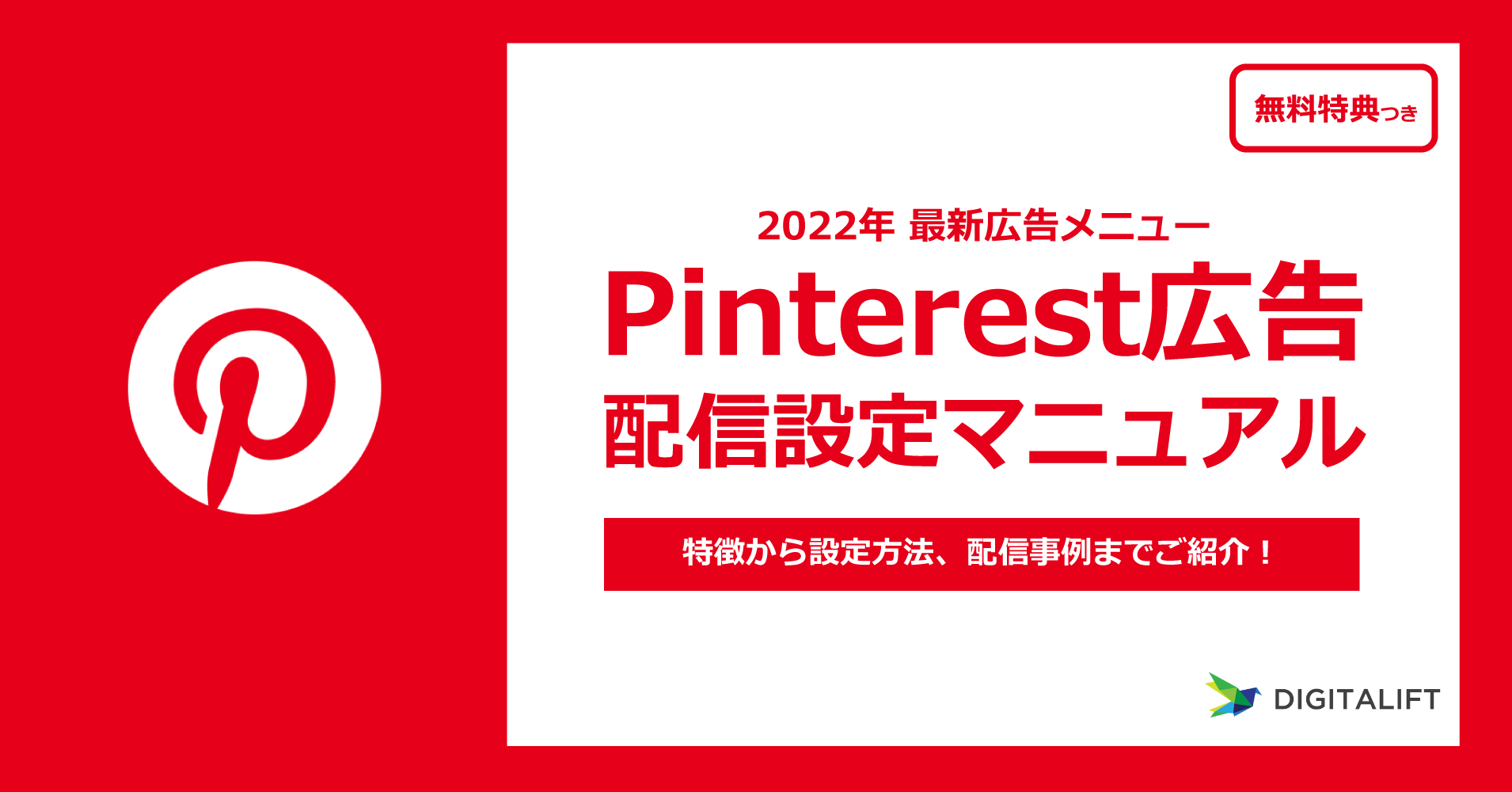 「ビジュアル探索ツール」として、Z世代をはじめとした若年層を中心に日本でのユーザーも伸ばしているPinterestは、2022年6月から国内で広告事業を開始。全世界で4億人を超えるオーディエンスに向けて商品やサービスに紐づいたアイデアを紹介することが可能となりました。様々な事業規模の広告主から注目を集めている「Pinterest広告」ですが、新しい媒体という事もあり、設定方法や実績についての情報が少なく配信に踏み切れないという事業者様も多く、デジタリフトではそのような声に応えるため、Pinterest広告の概要から初期設定の方法、配信事例をまとめたホワイトペーパーの無料公開をスタートさせました。