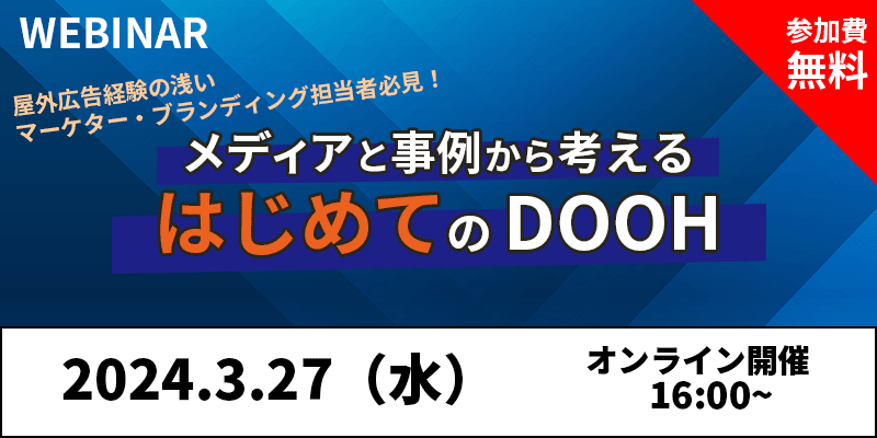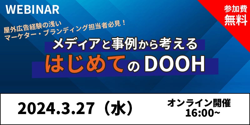 屋外広告専門のヒットが“屋外広告ビギナー”向けの『屋外広告ウェビナー』を開催 / 『メディアと事例から考える はじめてのDOOH』 / 【2024年3月27日(水) 16時~ / 参加費無料】