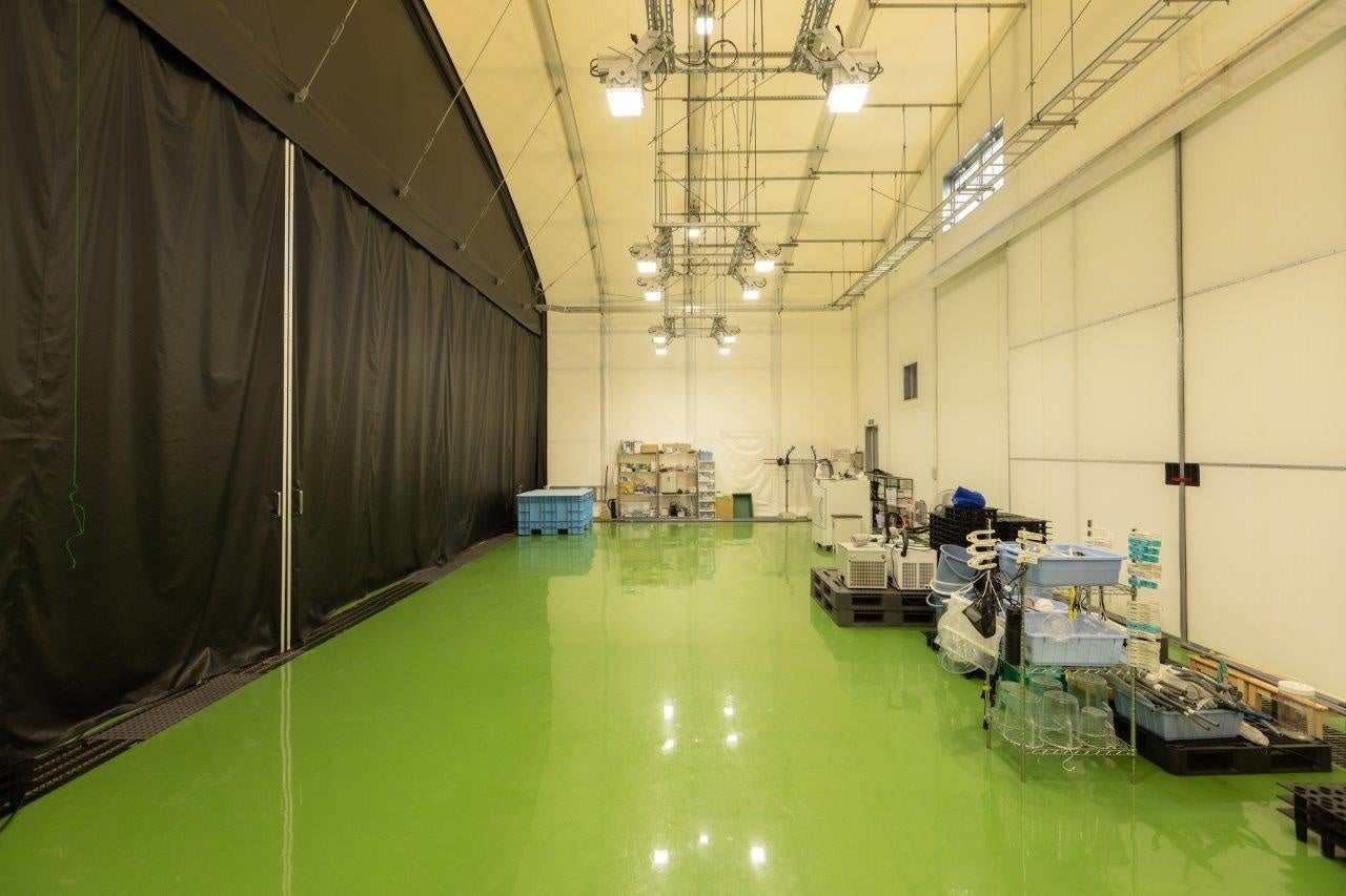 今や世界規模で議論されている気候変動によって問題視されている食糧危機、そしてSDGs(持続可能な開発目標)の観点から安定した食料供給を目的とする食品づくりが重視される中、国内の陸上養殖の取り組みが活発になっています。今回受注した養殖研究施設の特徴として、太陽光を透過した明るく清潔感のある作業空間と、太陽光を遮断し人工的に照度制御を可能とした遮光空間の、2つの異なる空間を有すとともに当社建築物の特長となる中間柱のない構造により柔軟なレイアウトを実現しています。そして施設の断熱性により、適切な温度管理を可能にしたほか、塗り床や内部側溝によって水はけを良くし、藻や苔の発生を抑制するなど、様々な工夫を盛り込んでいます。