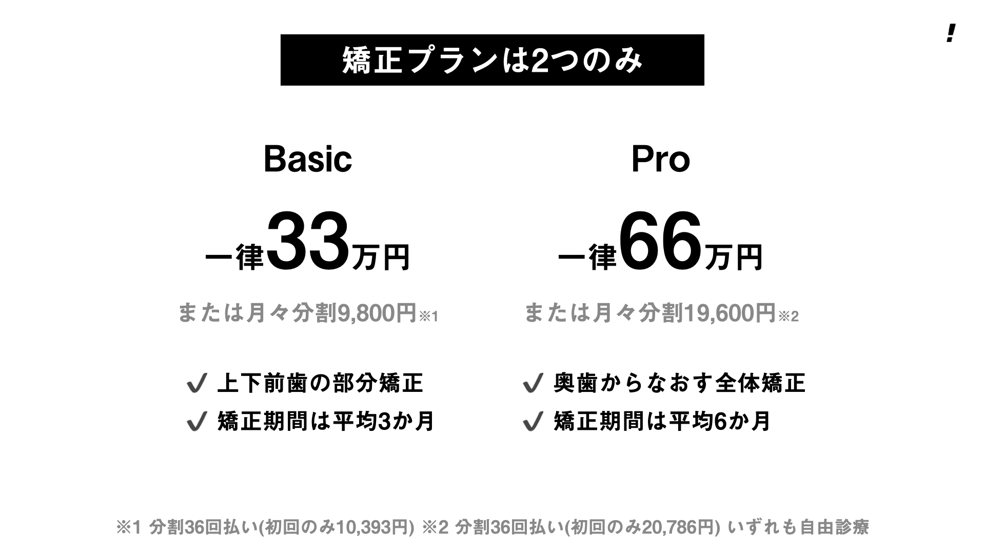 ②シンプルな料金体系 ~矯正プランは2つのみ~