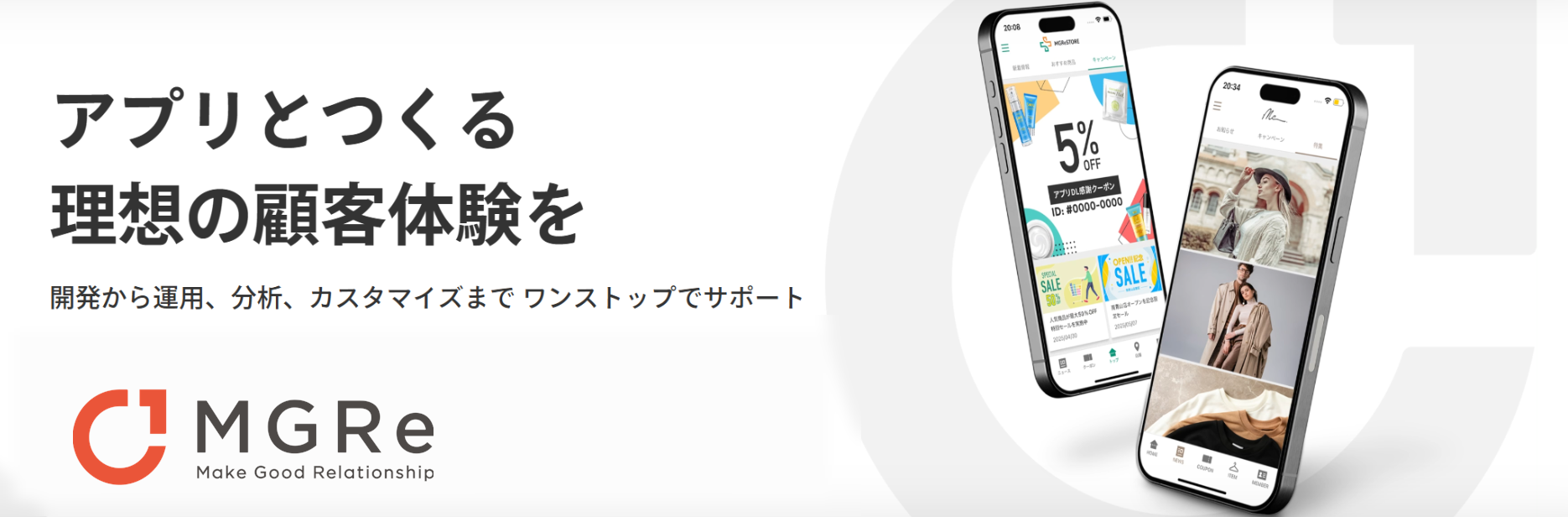 MGRe(メグリ)は、企業の変化や成長に伴走する、カスタムできるアプリ開発・運用プラットフォームです。フルパッケージではなく、従来の会員連携・SDK組込など柔軟なシステム連携開発が可能で、企業独自の進化に合わせたアプリ開発・運用を支援します。アプリのアクティブユーザー数によるMAU課金を採用しており、規模や予算に合わせた段階的なアップデートも可能です。