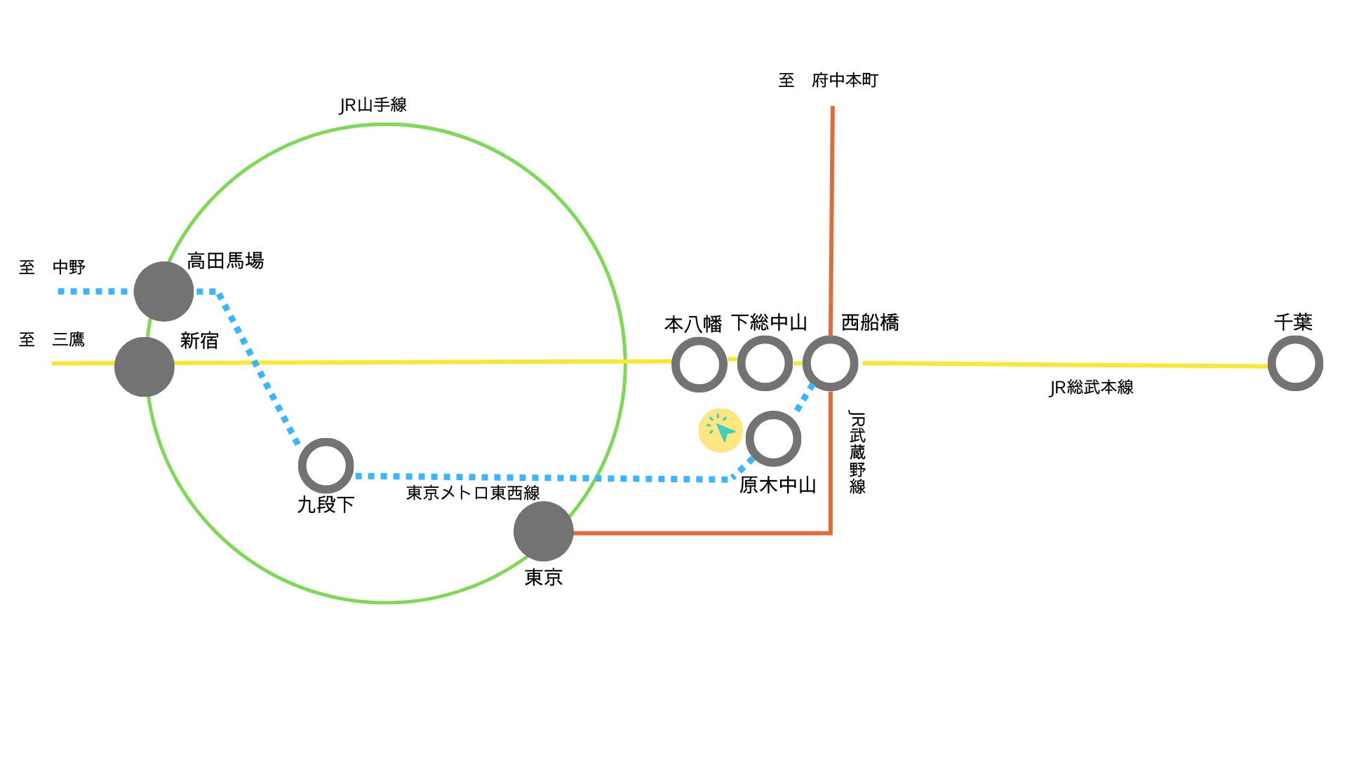 「原木中山」駅は市川市との境に近く、市川市民の利用も多い点が特徴です。「西船橋」駅まで約3分、「東京」駅まで約40分、「JR千葉」駅まで約35分でアクセスがすることが可能です。また、「下総中山」駅は「JR本八幡」駅と「JR西船橋」駅の間に位置し、「JR新宿」駅までは約42分、「JR千葉」駅までは約22分でアクセスできます。「原木中山」駅・「下総中山」駅ともに東京方面・千葉方面いずれにもアクセスしやすく、「原木中山」においては賃料相場も周辺に比べ低めの設定の為、都内にお勤めの方のベッドタウンとしても人気のエリアです。