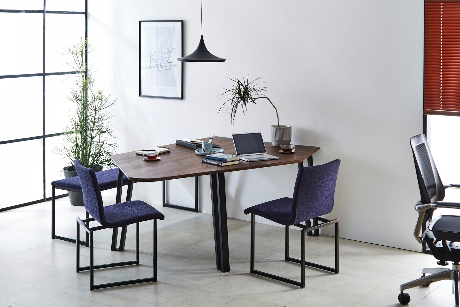 サイズは2タイプ、素材はウォールナットとホワイトオーク、脚は無垢材とスチール、塗装もオイル塗装とウレタン塗装から選べます。オフィスはもちろん、ご自宅にもおすすめできる商品です。