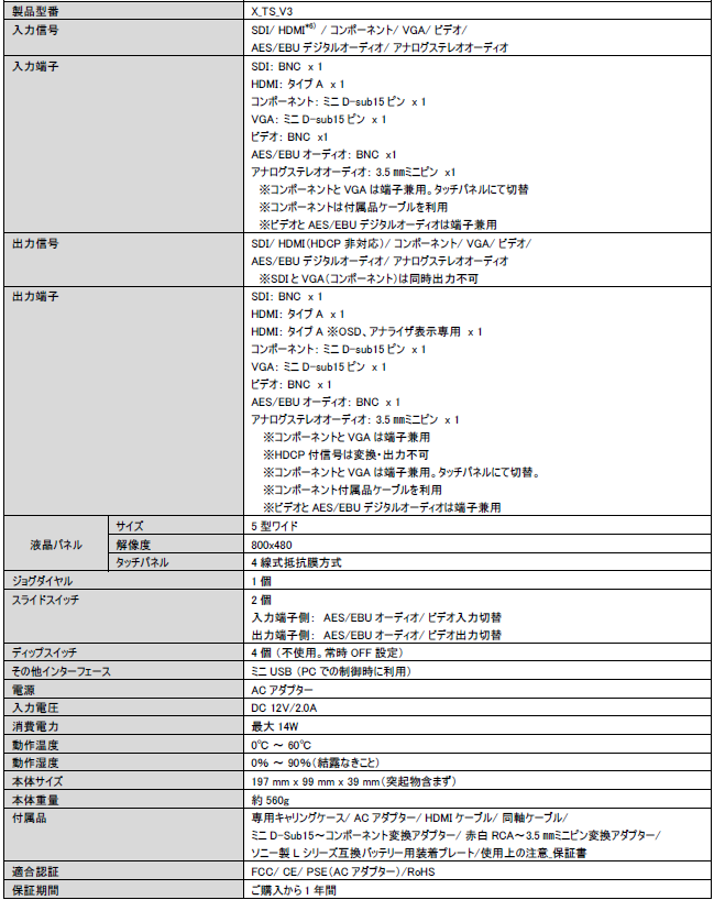 *1) HDCP暗号化された HDMI信号の入力時の音声ディエンベデッドは対応しておりません。