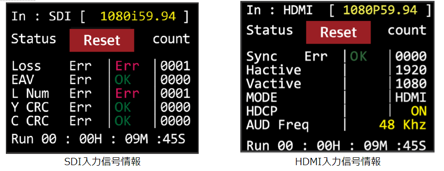 SDI/HDMI入力情報モニタリング